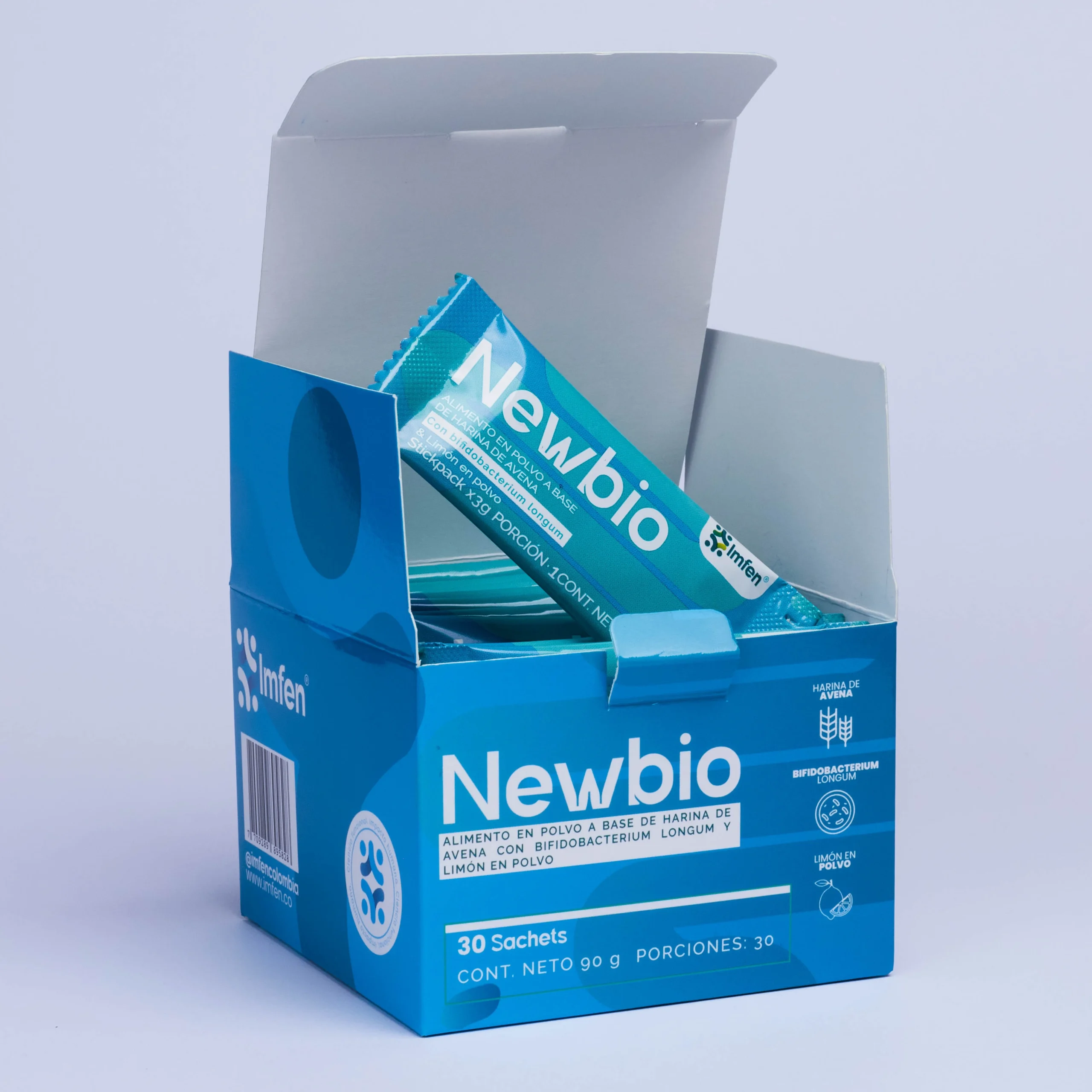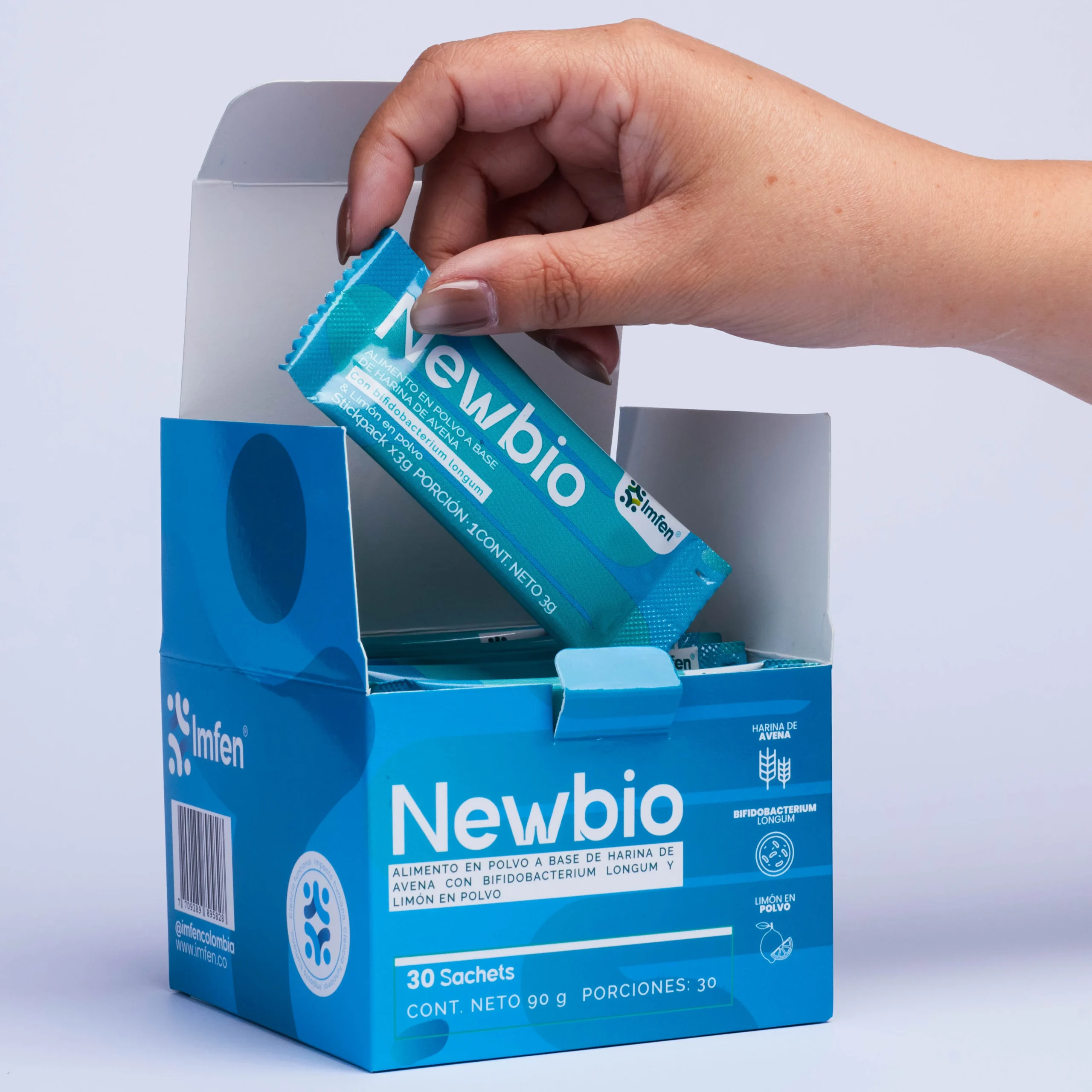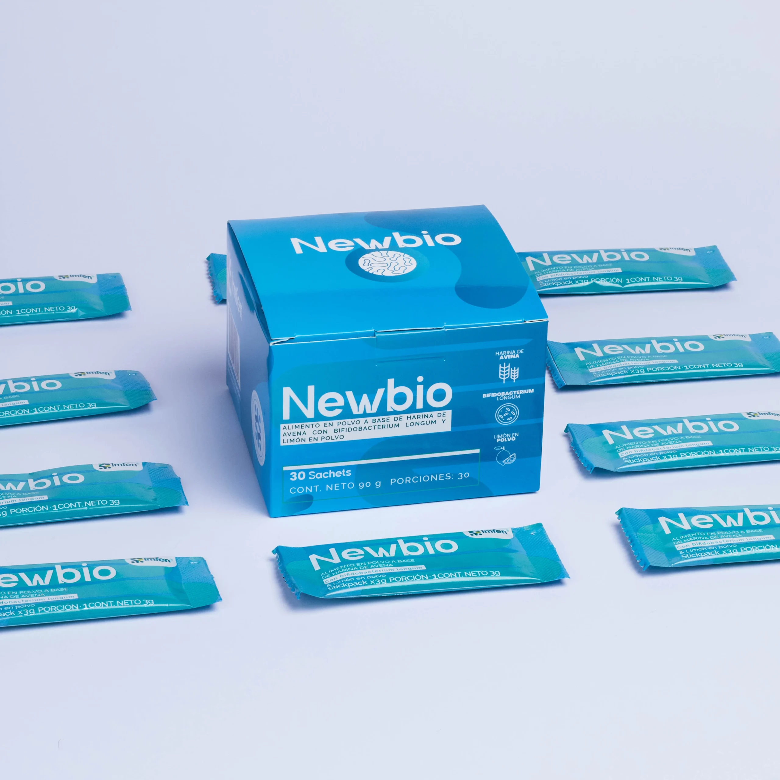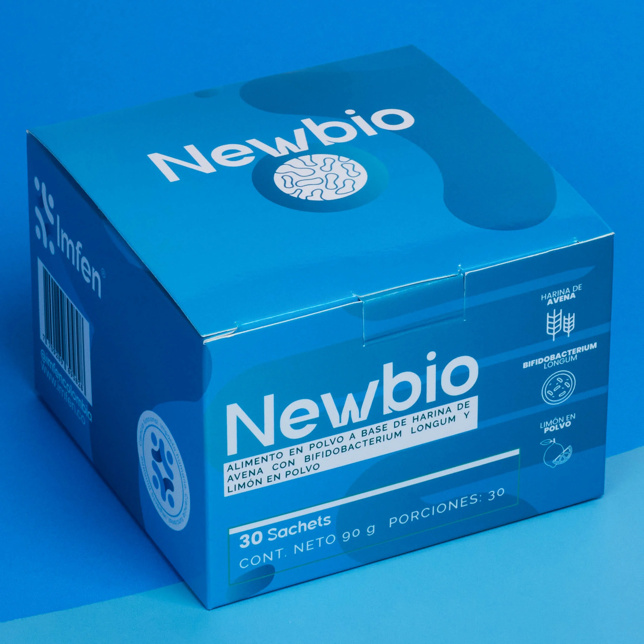 Simbiótico digestivo funcional. Bienestar que comienza desde el intestino. NEWBIO es un nutracéutico desarrollado para acompañar la armonía digestiva y el bienestar intestinal.