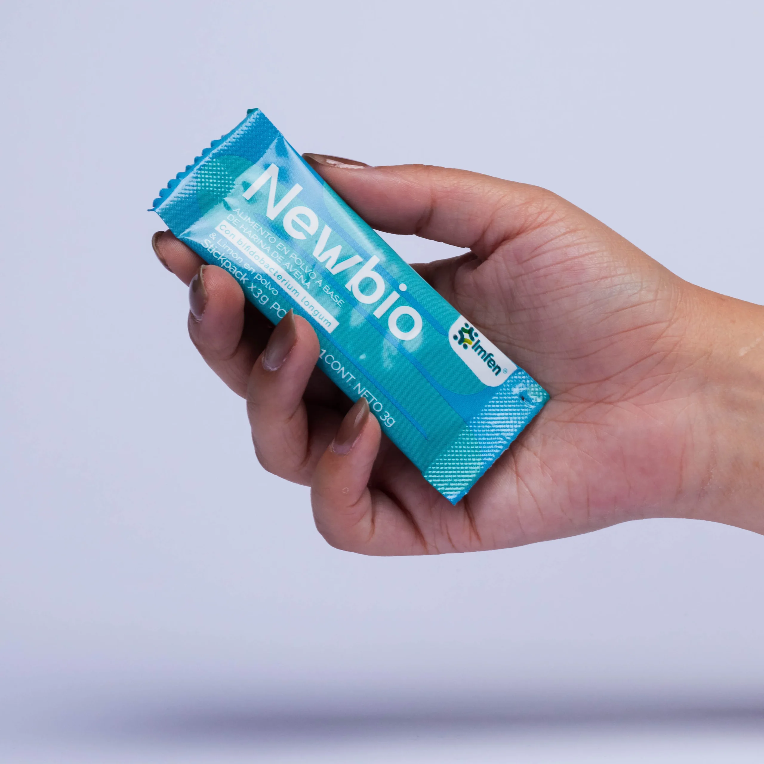NEWBIO es una formulación nutracéutica basada en la ciencia de la microbiota intestinal, diseñada para favorecer la armonía del ecosistema intestinal a través de la interacción funcional entre el probiótico Bifidobacterium longum ES1 2.5 BUFC (CECT 7347), prebióticos y otros componentes de origen biológico.